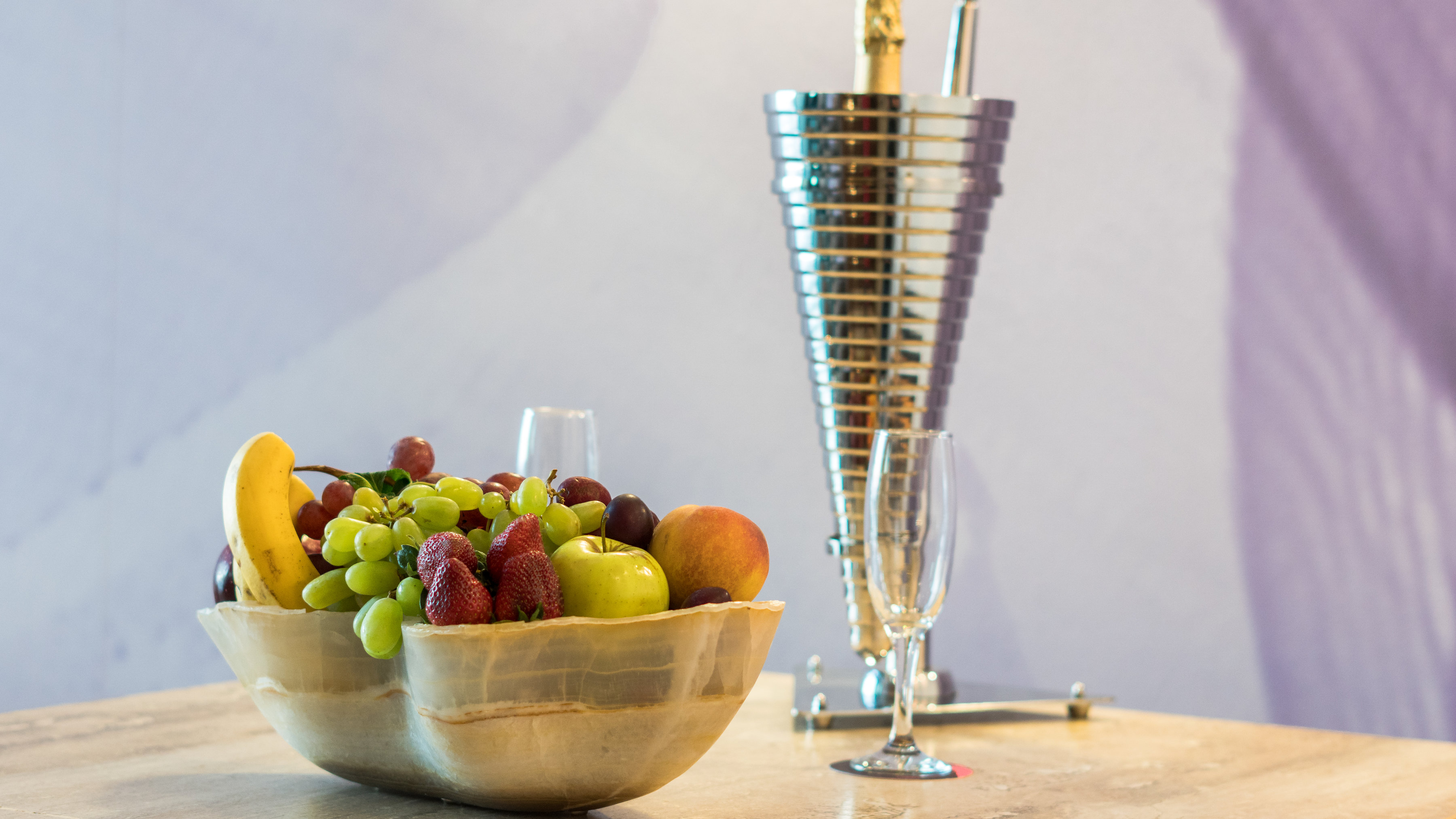 Fruit plate & champagne
